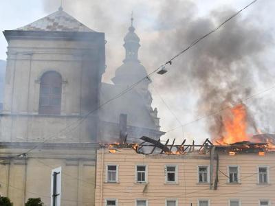 وأكدت السلطات المحلية في لفيف أن مباني سكنية تاريخية قرب الدير الذي يعود إلى القرن السادس عشر -والواقع ضمن المركز التاريخي للمدينة المُدرج على قائمة اليونسكو للتراث العالمي- قد أصيبت واشتعلت فيها النيران، كما تضرّر برج الدير.