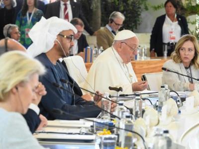 صباح يوم الجمعة توجه قداسة البابا فرنسيس للمشاركة في قمة مجموعة السبع التي افتُتحت أمس الخميس في "Borgo Egnazia" في بوليا. حطّت مروحية الأب الأقدس عند حوالي الساعة الثانية عشرة في الملعب الرياضي في بوليا حيث كانت في استقباله رئيسة الوزراء الإيطالية جورجيا ميلوني، بعدها توجّه الأب الأقدس إلى المقر المخصص له، حيث أجرى أول مجموعة من المحادثات الثنائية مع السيدة كريستالينا جورجييفا، المدير العام لصندوق النقد الدولي، وفولوديمير زيلينسكي، رئيس جمهورية أوكرانيا؛ وإيمانويل ماكرون، رئيس الجمهورية الفرنسية؛ وجاستن ترودو، رئيس وزراء كندا. بعدها توجّه البابا فرنسيس إلى قاعة "أرينا" حيث تعقد الجلسة المشتركة لقمة مجموعة السبع حيث ألقى كلمته التي قال فيها يشهد الكتاب المقدس أن الله قد أعطى البشر روحه ليكون لهم "الحكمة والفطنة والمعرفة في كل عمل". ولذلك فإن العلم والتكنولوجيا هما نتاجان استثنائيان للإمكانات الإبداعية التي لدينا نحن البشر. وبالتالي من خلال استخدام هذه الإمكانات الإبداعية التي وهبها الله لنا، ولد الذكاء الاصطناعي. الذي وكما هو معروف، هو أداة قوية جدًّا، تُستخدم في العديد من مجالات العمل البشري: من الطب إلى عالم العمل، ومن الثقافة إلى مجال الاتصال، ومن التعليم إلى السياسة. ومن المشروع الآن الافتراض بأن استخدامه سيؤثر بشكل أكبر على أسلوب حياتنا، وعلاقاتنا الاجتماعية، وفي المستقبل حتى على الطريقة التي نرى بها هويتنا كبشر. ومع ذلك، غالبًا ما يُنظر إلى موضوع الذكاء الاصطناعي كشيء ثنائي التكافؤ: فمن ناحية، هو يحمّس على الإمكانيات التي يوفرها، ومن ناحية أخرى هو يولِّد الخوف من العواقب التي يقترحها.