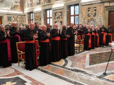 استقبل البابا فرنسيس اليوم الجمعة المشاركين في الجمعية العامة لدائرة عقيدة الإيمان. وعقب ترحيبه بالجميع وشكرهم على عملهم الثمين ذكَّر الأب الأقدس بمهمة هذه الدائرة حسبما جاء في الدستور الرسولي Praedicate Evangelium حول الكوريا الرومانية وخدمتها للكنيسة وللعالم، حيث كتب قداسته في هذه الوثيقة "مهمّة دائرة عقيدة الإيمان هي مساعدة الحَبر الرّومانيّ والأساقفة في إعلان الإنجيل في جميع أنحاء العالم، وتعزيز وحماية سلامة العقيدة الكاثوليكيّة في الإيمان والأخلاق، بالاعتماد على وديعة الإيمان، وبالبحث الدائم أيضًا عن فهم أعمق لها، لمواجهة القضايا الجديدة". وواصل البابا أنه ولبلوغ هذا الهدف قد تم من خلال الإرادة الرسولية Fidem servare تأسيس قسمين منفصلين داخل الدائرة، أحدهما خاص بالعقيدة والثاني بالقضايا النظامية. كما وذكَّر البابا فرنسيس بالرسالة التي وجهها إلى عميد الدائرة في الأول من تموز يوليو ٢٠٢٣ لمناسبة تعيينه والتي تحدث فيها قداسته عن هذا الإجراء وأيضا عن أهمية مشاركة متخصصين يتمتعون بالكفاءة في القسم الثاني، الخاص بالجوانب النظامية، وذلك لضمان التنبه والحزم في تطبيق التشريعات الكنسية القائمة وخاصة إزاء حالات الاعتداء على القاصرين، وأيضا من أجل تعزيز مبادرات تكوينية في القانون الكنسي.