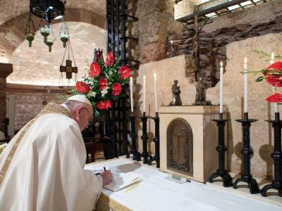 لقد وعد الأخ فرنسيس بالطاعة والاحترام للبابا هونوريوس وخلفائه المنتخبين قانونيًا وللكنيسة الرومانية. وعلى الرهبان الآخرين أن يطيعوا الأخ فرنسيس وخلفائه: كتب محب المسيح المتواضع في القوانين بعد أن أعرب عن "الرغبة في اتباع المشورات الإنجيلية". لذلك، "لكي نعيش تعاليم المعلم، من الضروري البقاء في الكنيسة"، يشرح البابا فرنسيس، مضيفًا أنه "في رباط "الطاعة والاحترام" للبابا وكنيسة روما، اعترف فقير أسيزي بعنصر أساسي للأمانة للدعوة وقبول المسيح في الإفخارستيا". بالنظر إلى اليوم، يحث الأب الأقدس الفرنسيسكان على عيش "روح القوانين في الإصغاء والحوار، كما يقترح المسار السينودسي"، ويضيف: "ادعموا الكنيسة بقوة، وأصلحوها بالمثال والشهادة، حتى عندما قد يبدو ذاك أنه سيكلفكم أكثر.