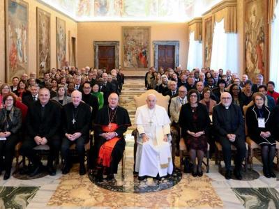 أضاف الأب الأقدس يقول فيما يتعلق بالمحور الأول، أدعوكم إلى العمل لكي يتحقق بشكل أكبر حلم كنيسة سينودسية وإرسالية بالكامل. ابدأوا بجماعاتكم، وشجعوا فيها أسلوب المشاركة والمسؤولية المشتركة، حتى على مستوى الإدارة. لتنمو "المواقد" في داخلها وتنشر من حولها جوًّا من الإصغاء المتبادل والدفء العائلي، نحترم فيه بعضنا البعض ونعتني ببعضنا البعض، مع إيلاء اهتمام خاص للأشخاص الأشدَّ ضعفًا والذين يحتاجون إلى الدعم. ولتحقيق هذا الهدف، سيكون من المفيد لكم أن تسيروا على دروب المشاركة والتشاور المتبادل على كافة المستويات، مع العناية بشكل خاص بالتواصل والحوار الصادق. أما فيما يتعلق بالمحور الثاني، وهو الأمانة للموهبة، فسأذكركم ببعض كلمات مؤسِّسَتكم التي كانت تقول: "لا تترك سوى الإنجيل لمن يتبعك. وإذا قمت بذلك فإن المثال الأعلى للوحدة هو الذي سيبقى [...]. وما يبقى وسيبقى على الدوام هو الإنجيل الذي لا يتعرّض لتآكل الزمن". ازرعوا الوحدة من خلال حمل الإنجيل، دون أن يحيد عن نظركم عمل التجسد الذي لا يزال الله يريد أن يحققه فينا ومن حولنا بواسطة روحه، لكي يكون يسوع بشرى سارة للجميع، بدون استثناء أحد، "فيكونوا بأجمعهم واحدا".