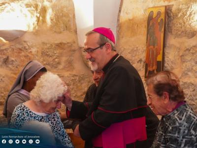 القدس - نبض الحياة: أقام البطريرك بييرباتيستا بيتسابالا الصلاة مع المسنين في بيت عمواس للرعاية الصحية، الواقع في بلدة القبيبة قضاء القدس، وذلك خلال فترة زيارته لمدينة رام الله التي استمرت على مدار 3 ايام.