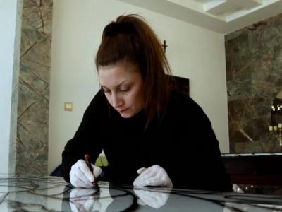 بغديدا - جورجينا حبابة - اسي مينا - تفتخر الفنانة رؤى فرج البنّاء بمساهمتها في تطريز جدران كنيسة الطاهرة الكبرى التاريخيّة في بلدتها الأثيرة بغديدا-العراق بزجاجيّات رسمَتْها لتروي من خلالها مراحل درب الآلام المقدّس.