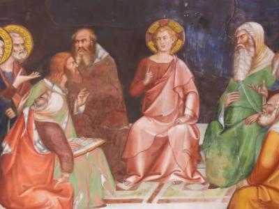 وبعدها يقودنا إنجيل (لو 2: 41 - 52)، إلى التأمّل بما ورد فيه؛ حين كانت العادة تقتضي زيارة أورشليم في الأعياد اليهوديّة الكبرى، صعد يسوع مع عائلته لزيارة الهيكل، وكان يومها قد بلغ الثانية عشرة من عمره، فبقي هناك ثلاثة أيام، من غير أن يعلم أبواه. ثمّ أخذا يبحثان عنه، وأخيرًا وجداه في مدرسة الهيكل، يناقش في أمور الشريعة، فتعجّب الجميع ممّا سمعوا منه. قالت له أمّه: «يا ابني، لماذا فعلت بنا هكذا؟ فها أنا وأبوك كنّا نطلبك متوجّعين»! فأجابها: «ولمَ بحثتما عني؟ ألم تعلما أنه يجب عليّ أن أكون عند أبي؟».