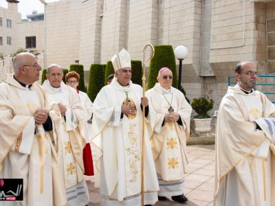 ترأس القداس الحبري المطران جمال دعيبس، بحضور غبطة البطريرك الكاردينال بييرباتيستا بيتسابالا، بطريرك القدس للاتين، وبمشاركة عدد من الأساقفة والكهنة والرهبان والراهبات وجمع غفير من أبناء الرعية والمؤمنين.