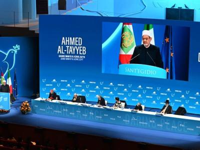 روما - شارك شيخ الأزهر ورئيس مجلس حكماء المسلمين الدكتور أحمد الطيب، في القمَّة العالميَّة التي تعقدها جمعية سانت إيجيديو بالعاصمة الإيطالية روما تحت عنوان "اللقاء العالمي من أجل السلام: إيجاد الشجاعة لتحقيق السلام"، بحضور الرئيس الإيطالي سيرجيو ماتاريلا، وجلالة الملكة ماتيلد ملكة بلجيكا، وأبرز القادة الدينيين والمفكِّرين من حول العالم.