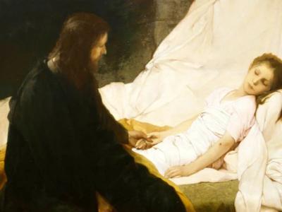 في بداية مقطع اليوم، نرى أن أحد رؤساء المجمع، لا يستطيع أن يفعل شيئا لابنته المريضة، فيأتي إلى يسوع. يمضي نحو يسوع، إلا أن المرأة المنزوفة تعيق وصوله، وفور وصوله إلى بيت يائيرس، كان قد فات الأوان بالفعل، فقد فارقت الطفلة الحياة (مرقس 5: 35).