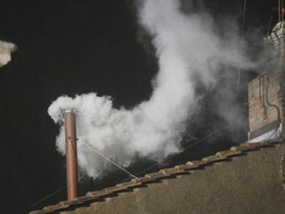 عندما يتم انتخاب البابا، يُستدعي سكرتير مجلس الكرادلة ومدير التشريفات الليتورجية إلى الكنيسة السيستينية. ويطلب عميد الكرادلة بحضورهما من المنتخب إن كان يقبل المهمة وما الاسم الذي يختاره لنفسه. وبعد أن يعطي المنتخب جوابه، تُحرق الأوراق وتضاف إليها مادة كيماوية تصدر دخانًا أبيض (وتقرع أجراس روما)، بينما يذهب البابا المنتخب ليرتدي اللباس الجديد (مع العلم أن لباسًا أبيضًا من ثلاثة مقاييس مختلفة يكون جاهزًا من قبل في سكرستيا الكنيسة السيستينية).