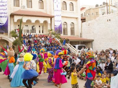وفي اليوم الختامي للمخيم نظمت مسيرة من البلدة القديمة وكنيسة الروم الأرثوذوكس باتجاه دير اللاتين، بمشاركة أعضاء المخيم والكهنة وعدد من أهالي البلدة، وبرفقة فرقة (عمو ميني) والمهرجين وسيرك فلسطين، اللذين قدموا فقرات ترفيهية وبهلوانية خلال المسيرة، تلاها سهرة مع الفنان أمجد خير الذي أمتع الحضور بالتراتيل والأغاني الفلسطينية والشعبية.