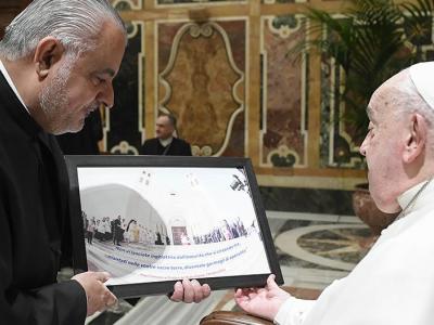 الأب رفعت بدر يقدّم لوحة لكنيسة معموديّة السيّد المسيح للبابا فرنسيس
