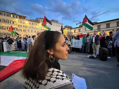 الفلسطينية لورين إمسيح، في الصفوف الأولى بمظاهرات إيطاليا