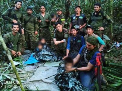 وكان أكثر من مئة جندي ترافقهم كلاب بوليسية وعشرات السكان الأصليين يبحثون عن الأطفال بين إقليمي جوافياري وكاكويتا منذ العثور على حطام طائرتهم، وسط نباتات كثيفة.