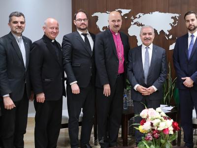 جاء ذلك خلال استقبال رئيس الوزراء، الأربعاء 17 أيار 2023، في مكتبه برام الله، وفدًا من مجلس اتحاد كنائس هنغاريا، بالتنسيق مع اللجنة الرئاسية العليا لمتابعة شؤون الكنائس، بحضور سفير هنغاريا لدى دولة فلسطين، تشابا رادا.