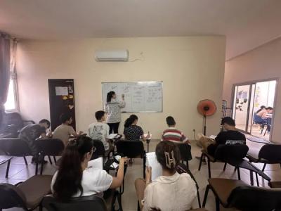 دروس مراجعة الرياضيات في منزل راهبات الكلمة المتجسد، داخل مجمع رعية العائلة المقدسة للاتين.