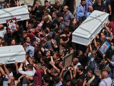 خارج المستشفى الذي تُعالج فيه أنجي، اصطفت توابيت بعض شهداء هجوم الكنيسة، استعدادًا للدفن. حضر أشخاص من مختلف أطياف المجتمع السوري، يمثلون مختلف شرائحه، مراسم جنازة أُقيمت في كنيسة قريبة وسط إجراءات أمنية مشددة.