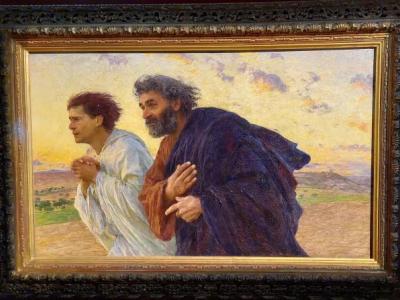 يلفت الأنظار في تحفة السويسري نور الشمس الذي يشير إلى الرجاء والولادة الجديدة. فتضخّ الألوان الساحرة فيها روحانيّة فريدة تبدّد الغيوم المسيطرة على نفوس الناظرين إليها. وأمام وجهَي الرسولَيْن بطرس ويوحنّا الواقعيَّيْن يتسمّر الزوّار؛ فتعابير يوحنا الملتحف بالأبيض تعكس القلق ولكن أيضًا الرهبة والإيمان العميق. في حين يبدو بطرس مضطربًا ومنبهرًا في آن، وهو يرتدي رداءً بنفسجيًّا يحتلّ قسمًا أساسيًّا من الرسم. وتتجّه أنظار الرسولَيْن إلى خارج اللوحة كما لو أنّهما يتأمّلان منذ الآن في العالم الآخر.
