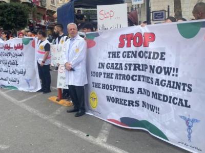 من جانبه استنكر النقيب في نقابة المحامين امجد الشلة مواقف الدول الاوروبية والولايات المتحدة الامريكية بمنحها الضوء الاخضر للمجازر التي ارتكبت بحق شعبنا الفلسطيني مطالبا الدول بان تغيير مواقفها تجاه ما يجري واصفا اياها اذا بقيت مستمرة في مواقفها الرسمية فانها تكون اختارت ان تكون شريك كامل في الجرائم التي يرتكبها الاحتلال.و أكدت رئسة نقابة المهندسين نادي حبش و قوف المهندسين إلى جانب العاملين في القطاع الصحي واشارت الى استشهاد عدد منهم في قطاع غزة و قالت ان نضال الشعب الفلسطيني من اجل حقوقه سينتصر.