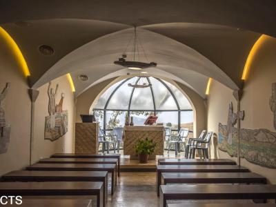 الحراسة في الارض المقدسة - تم تدشين فسيفساء جديدة للفنان الإيطالي أنطونيو فاكالوزو مخصصة للنبي إيليا على جبل نيبو مؤخرا يقع هذا الإبداع الفني في إحدى المصليين الثانويين المجاورين للمزار الفرنسيسكاني، من تصميم المهندس المعماري أسامة حمدان. الكنيسة الموجودة على اليسار، المخصصة للنبي إيليا، تضم الآن هذه الفسيفساء التي تحكي القصة، من خلال الصور المثيرة، لبعض أهم اللحظات من حياة النبي.