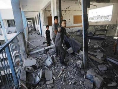 وأفادت مصادر محلية، إن طائرات الاحتلال استهدفت مدرسة للأونروا قرب مفترق الأنصار غرب مدينة غزة، تضم آلاف النازحين، ما أدى إلى استشهاد العشرات، واصابة آخرين بجروح مختلفة.