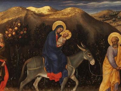 في رحلة العائلة المقدّسة إلى أرض مصر حملت سيّدتنا مريم العذراء طفلها بين ذراعيها وامتطت الحمار، فيما سار القدّيس يوسف خطيبها العفيف مشيًا على الأقدام للجوء إلى مصر هربًا من هيرودس المرتعب من ميلاد الطفل، ظنًّا منه أنّه سينافسه على اعتلاء العرش في المستقبل.