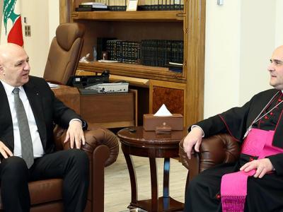 بحث الرئيس اللبناني جوزاف عون مع السفير البابوي المطران باولو بورجا تطورات الأوضاع في لبنان، ولا سيما في المناطق الجنوبية، حيث عرض الأخير نتائج زيارته إلى عدد من البلدات والقرى التي واصل سكانها الصمود رغم تدهور الوضع الأمني.