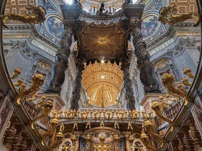 وكان برنيني قد صمّم الأعمدة الشهيرة والساحة الأمامية لبازيليك القديس بطرس، كما أنجز المظلّة البرونزية الضخمة فوق المذبح الرئيسي وكرسي القديس بطرس المذهّب في الحنية.