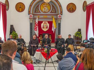 عُقد مؤتمر صحفي مشترك في ديوان البطريركية اللاتينية في القدس، بمشاركة الكاردينال بييرباتيستا بيتسابالا، بطريرك القدس للاتين، وحارس الأراضي المقدسة الأب فرانشيسكو يلبو. وخلال المؤتمر، تم التطرق إلى الحادثة التي وقعت يوم أحد الشعانين، حين منعتهم الشرطة الإسرائيلية من الدخول للصلاة في كنيسة القيامة، كما تم توضيح الترتيبات الخاصة باحتفالات أسبوع الآلام.