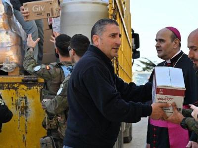 وقد انتشرت على مواقع التواصل الاجتماعي اللبنانية صور ومقاطع فيديو لممثل البابا، وهو يفرغ الطرود والحقائب الكبيرة. وأوضح قائلاً: "لقد شمرنا عن سواعدنا لتفريغ كل المواد لكي نتمكن من الانطلاق. قمنا اليوم بزيارة ست قرى في المنطقة نفسها، وعقدنا لقاءات مع الأهالي من مختلف الجماعات: الجماعة المارونية، وجماعات مسيحية مختلطة (أرثوذكس وكاثوليك ولاتين)، وجماعات من الروم الأرثوذكس والموارنة مع الدروز والسنة".