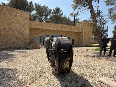 الصورة: جزء من صاروخ سقط بالقرب من كنيسة حقل الرعاة في بيت ساحور، شرق بيت لحم، ضمن موجة التصعيد العسكري الأخيرة في المنطقة.