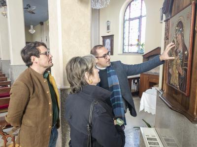 The visit included a field tour of several religious and heritage sites in the town, including the Latin Church of Christ the Redeemer, the Parables House, the Charles de Foucauld House, and the historic Church of St. George, where the Ambassador and her delegation received explanations from Sanad Sahelia about the history of these places, their spiritual and cultural significance, and their deep connection to the ecclesiastical heritage and local traditions of Taybeh, as living components of the area’s religious and historical memory.